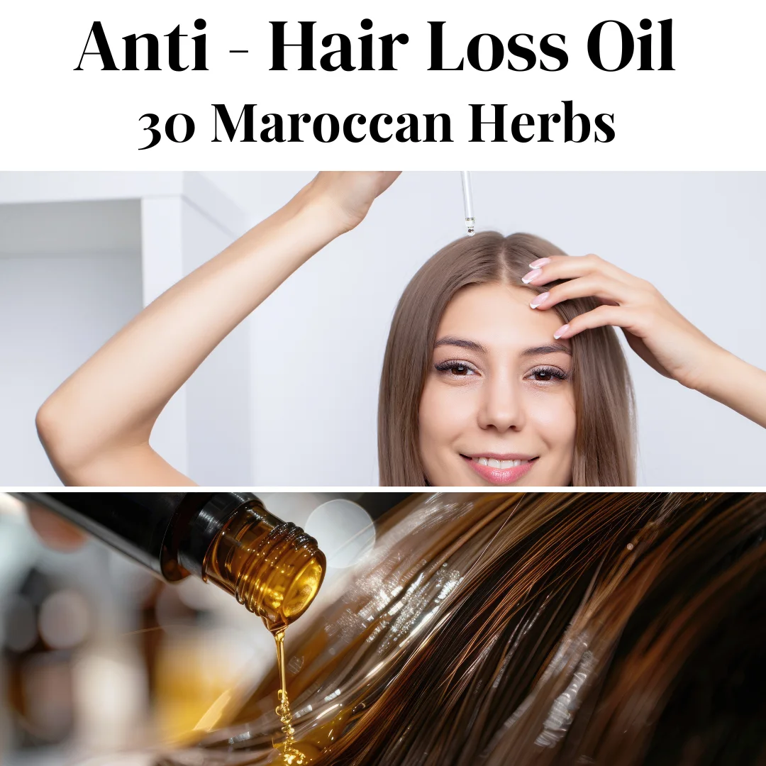 Retrouvez des cheveux revitalisés et en pleine santé avec notre huile anti-chute aux 30 herbes marocaines. Une solution naturelle pour une chevelure éclatante et renforcée