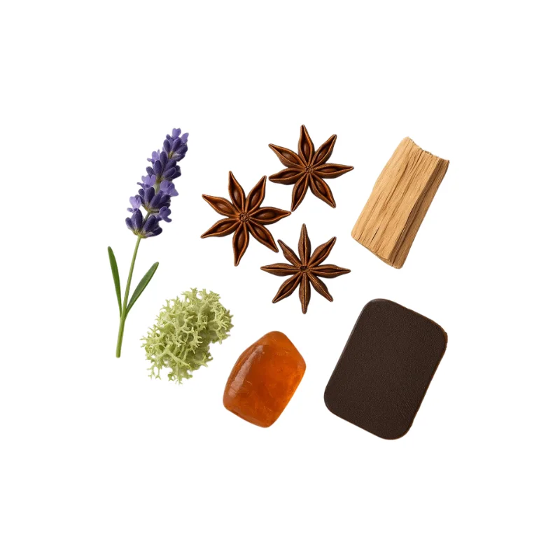 - Notes de tête : Lavande, anis, citron, basilic, bergamote, sauge