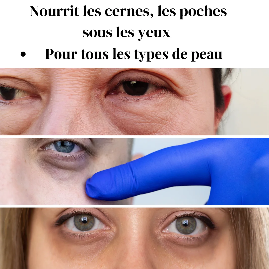 Une petite quantité suffit pour chaque application. Appliquez délicatement en tapotant sous les yeux et masser autour de l'œil en évitant le contact direct avec l'œil lui-même.